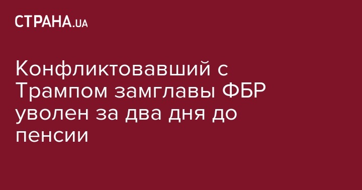 Конфликтовавший с Трампом замглавы ФБР уволен за два дня до пенсии