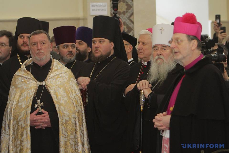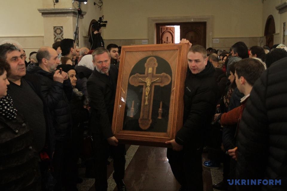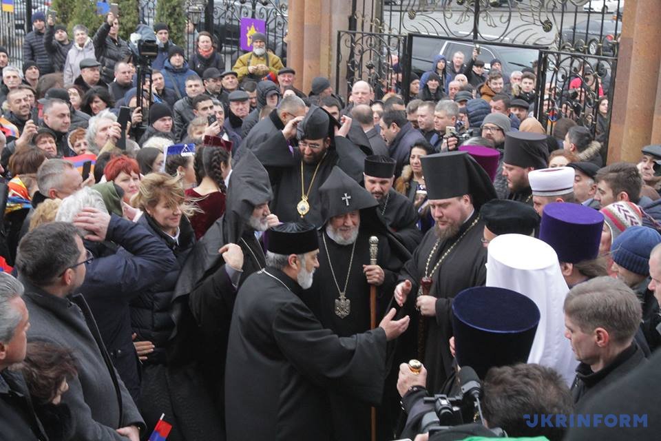На торжественное мероприятие прибыли тысячи верующих, меценаты, власти города и области. Среди собравшихся на церемонии - священнослужители со всех армянских храмов Украины, духовные лидеры религиозных общин. В целом - более 3 тысяч гостей.