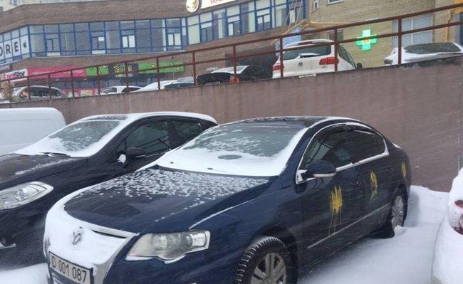 В Киеве на припаркованных автомобилях у консульства России накануне выборов президента РФ появились изображения с украинской символики. Об этом сообщает "Цензор".
