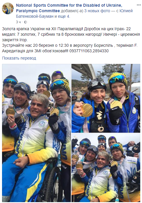 Об сообщает пресс-служба Национального паралимпийского комитета Украины в Facebook.