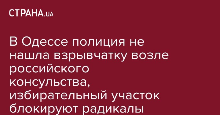 В день российских выборов 18 марта, в 8:10 в полицию Одессы поступило анонимное сообщение о том, что заминирована улица Гагаринское плато, на которой расположено генконсульство России, где должен открыться избирательный участок.