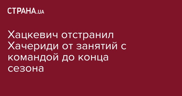 Защитник киевского "Динамо" Евгений Хачериди, после инцидента в матче с "Лацио", отстранен от тренировок с командой до конца сезона. Он будет заниматься по индивидуальной программе.