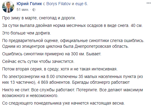 "По предварительной оценке, официальные синоптики слегка ошиблись. Одним из эпицентров циклона была Днепропетровская область.
