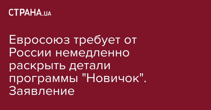 Евросоюз требует от России немедленно раскрыть детали программы "Новичок". Заявление