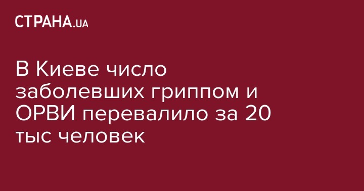 В Киеве число зарегистрированных больных гриппом и ОРВИ за неделю выросло до 21 тыс. 931 человек с 17 тыс. 364 человек, то есть рост заболеваемости составил 20,8%.