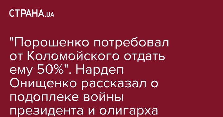 "Порошенко потребовал от Коломойского отдать ему 50%". Нардеп Онищенко рассказал о подоплеке войны президента и олигарха