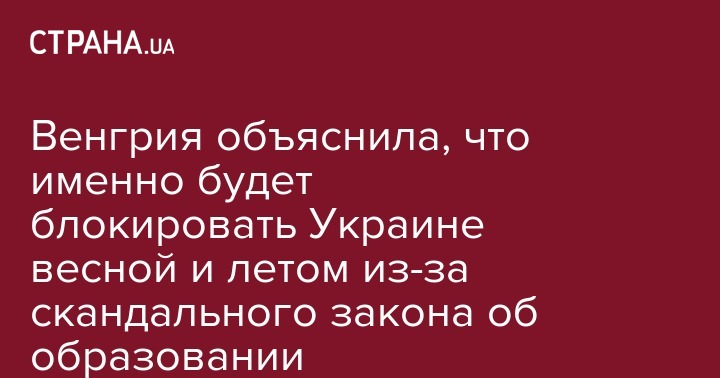 Министр иностранных дел Венгрии Петер Сийярто заявляет, что его страна требует от Украины внести изменения в закон об образовании и отложить его реализацию до 2023 года, иначе Венгрия будет блокировать важные для Украины встречи на уровне Европейского Союза и Организации Североатлантического договора (НАТО).