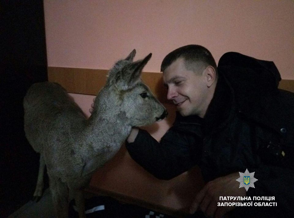 Косуля отогрелась в помещении полицейских и с удовольствием позировала для селфи, фото: facebook.com/zaporizhiapolice