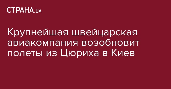 Крупнейшая швейцарская авиакомпания возобновит полеты из Цюриха в Киев