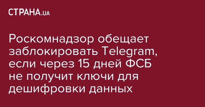 Роскомнадзор грозит заблокировать Telegram после 15 дней, если мессенджер не предоставит ключи для дешифровки сообщений пользователей. Об этом говорится на сайте российского ведомства.