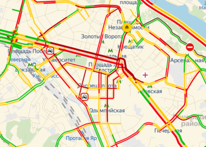 Заторы традиционно "сковали" бул. Тараса Шевченко, ул. Владимирскую, Льва Толстого, Крещатик, Бассейную, Антоновича, Большую Житомирскую и прилегающие к ним.