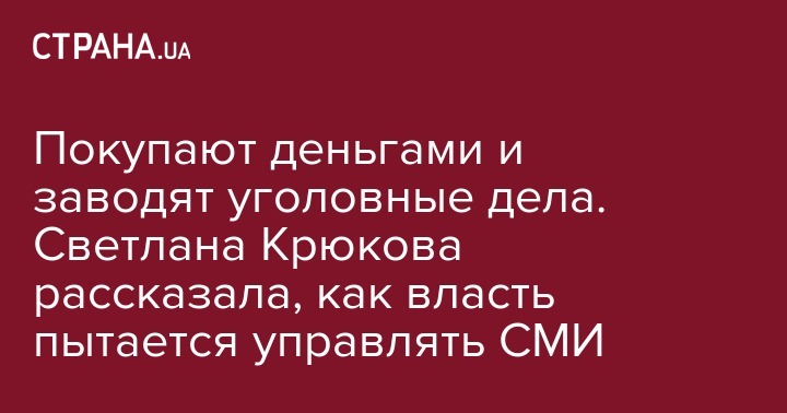 "Кого-то покупают деньгами, они системно ведут переговоры, чтобы перекупить медиа, ввести своих людей в управление. Рынок медиа у нас не столь богатый, и многие идут на эти соблазны", - заявила Крюкова.