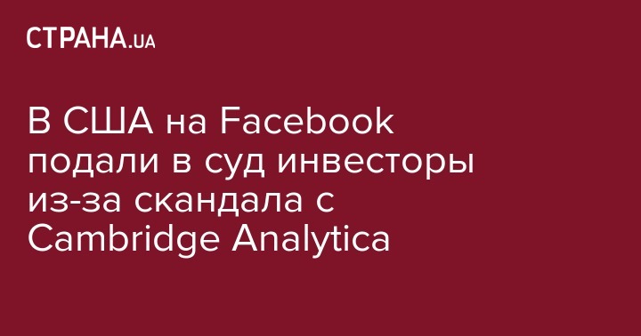 20 марта в США был подан коллективный судебный иск в отношении компании Facebook в связи со скандалом вокруг Cambridge Analytica.