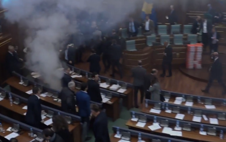 Оппозиционный депутаты парламента Косово распылили слезоточивый газ в зале во время голосования за соглашение о признании линии госграницы с Черногорией.
