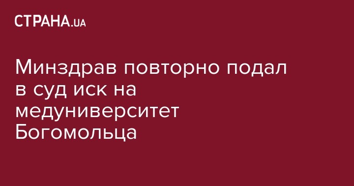 Министерство здравоохранения повторно подало исковое заявление против Национального медицинского университета имени Богомольца про устранение препятствий в пользовании имуществом государства. Об этом сообщает и.о. министра здравоохранения Ульяна Супрун на своей странице в Twitter.