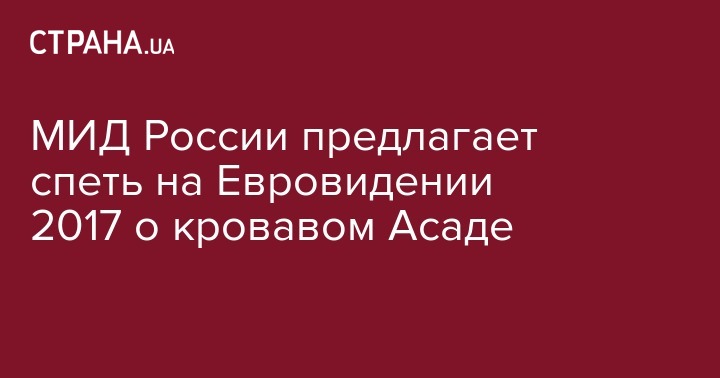 Официальный представитель МИД России Мария Захарова в своем Facebook предложила на следующем "Евровидении" спеть песню о президенте Сирии Башаре Асаде. Припев для этой композиции она сочинила и опубликовала у себя на страничке.