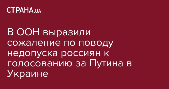 Недопуск киевскими властями проживающих в Украине россиян на участки для голосования на выборах президента России 18 марта не остался незамеченным в ООН. Об этом заявила заместитель верховного комиссара ООН по правам человека Кейт Гилмор, выразив "сожаление", что россияне не смогли проголосовать, передает ТАСС.