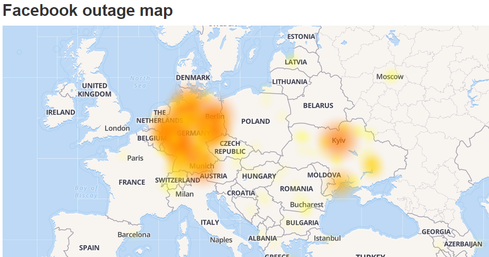 Судя по карте сбоев DownDetector, именно в Германии - сбой наиболее масштабный. На втором месте Украина.