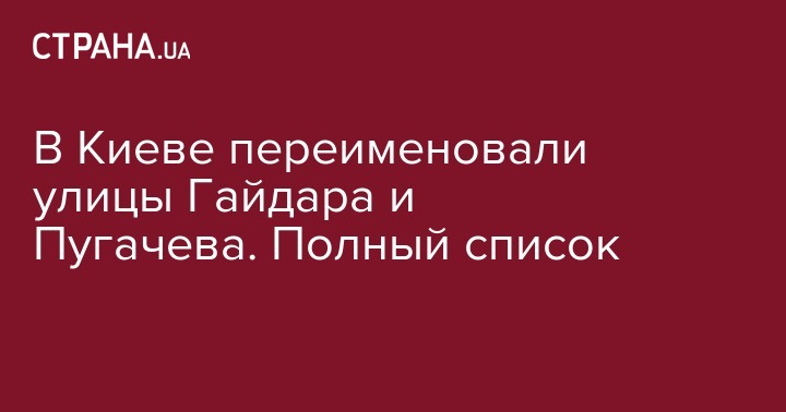 В Киеве переименовали улицы Гайдара и Пугачева. Полный список