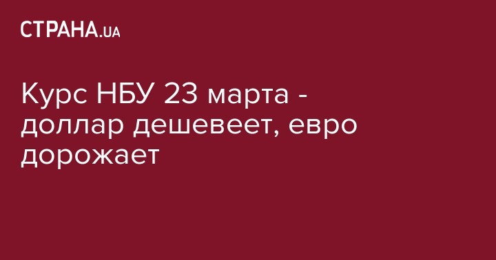 В пятницу, 23 марта, Нацбанк установил официальный курс гривны по отношению к иностранным валютам. По сравнению с предыдущим рабочим днем доллар подешевел, а евро стал дороже.