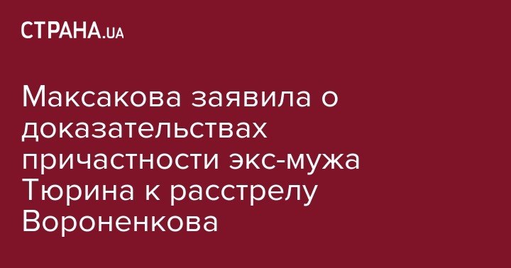 Вдова убитого в Киеве экс-депутата Госдумы Дениса Вороненкова Мария Максакова заявила о наличии доказательств причастности ее бывшего гражданского мужа Владимира Тюрина к этому преступлению. Об этом сообщает ТСН.