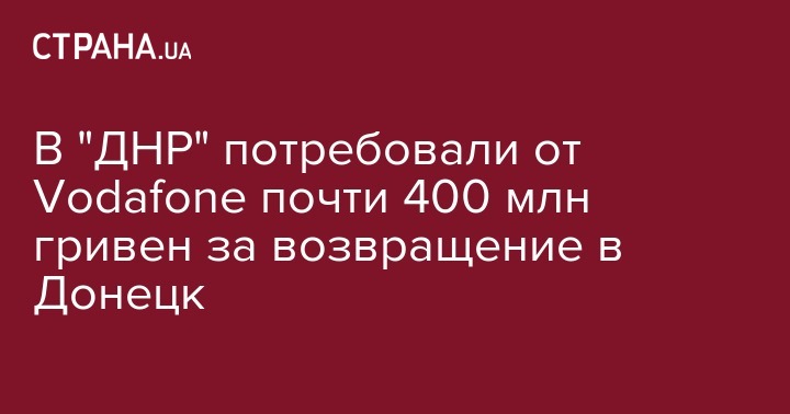 В "ДНР" потребовали от Vodafone почти 400 млн гривен за возвращение в Донецк