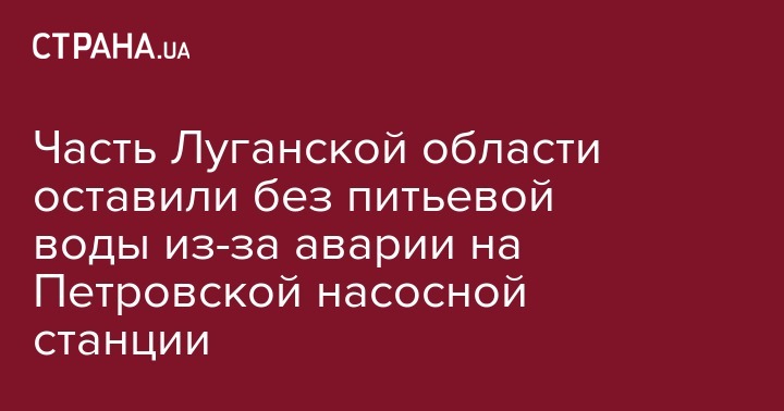 Часть Луганской области оставили без питьевой воды из-за аварии на Петровской насосной станции