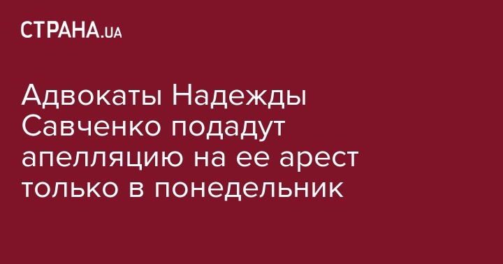 Адвокаты Надежды Савченко подадут апелляцию на ее арест только в понедельник
