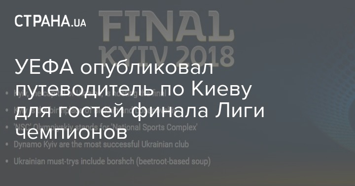 УЕФА обнародовала на своем сайте "путеводитель" для футбольных болельщиков, которые отправятся в украинскую столицу, где 26 мая состоится финал Лиги чемпионов.