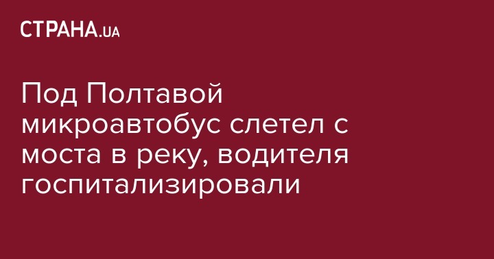 Сегодня ночью, 24 марта, в Полтавской области микроавтобус сорвался с моста в реку, в результате ДТП водитель получил травмы и был госпитализирован. Об этом сообщает пресс-служба полиции Полтавской области.