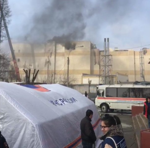 В Кемерово число погибших на пожаре выросло до 64. Над зданием вновь клубится дым