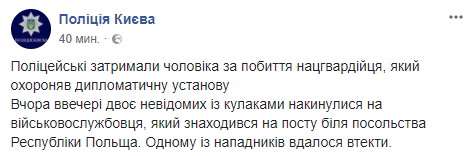 Задержан иностранец, избивший нацгвардейца у консульства Польши в Киеве