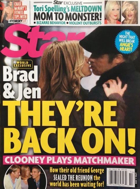 После того, как месяц назад Джастин Теру и Дженнифер Энистон объявили о расставаниитаблоид Star вышел с сенсационной обложкой — снимком целующихся Питта и Энистон.