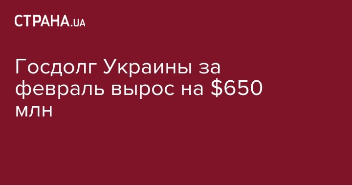 В феврале этого года совокупный государственный (прямой) и гарантированный государством долг Украины вырос на 0,85%, или на $0,65 млрд - до $76,76 млрд.