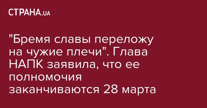 "Бремя славы переложу на чужие плечи". Глава НАПК заявила, что ее полномочия заканчиваются 28 марта