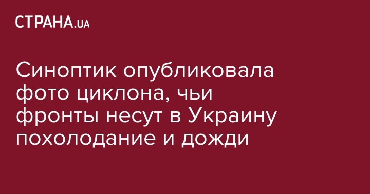 Синоптик опубликовала фото циклона, чьи фронты несут в Украину похолодание и дожди