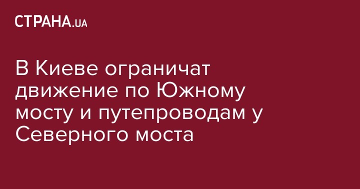 В Киеве из-за ремонтных работ частично ограничат движение транспорта по Южному мосту и на путепроводах у Северного моста. Об этом сообщается на сайте КГГА.