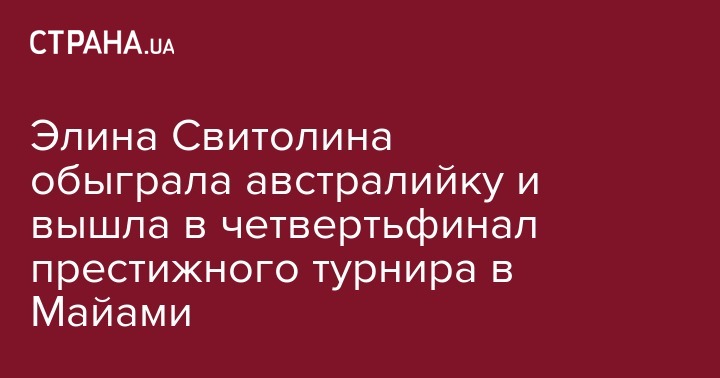 Для Свитолиной это станет первым участием в четвертьфинале Miami Open. В третьем круге соперницей украинки станет победительница пары Петра Квитова - Елена Остапенко. Матч 1/4 финала состоится 28 марта.