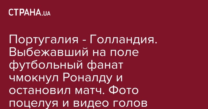Португалия - Голландия. Выбежавший на поле футбольный фанат чмокнул Роналду и остановил матч. Фото поцелуя и видео голов