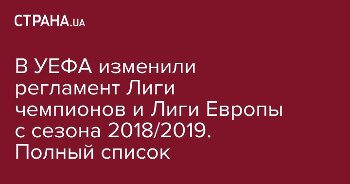 Эти изменения будут применяться в равной степени к Лиге чемпионов УЕФА, Лиге Европы УЕФА и Суперкубку УЕФА