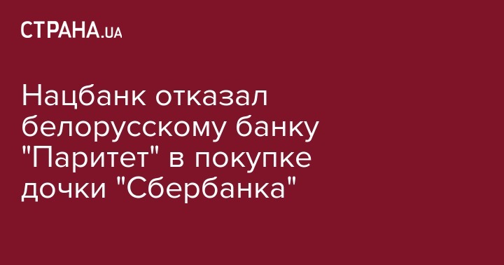 Нацбанк отказал "Паритетбанку" (Беларусь) в приобретении 100% уставного капитала ПАО "Сбербанк" (Киев).