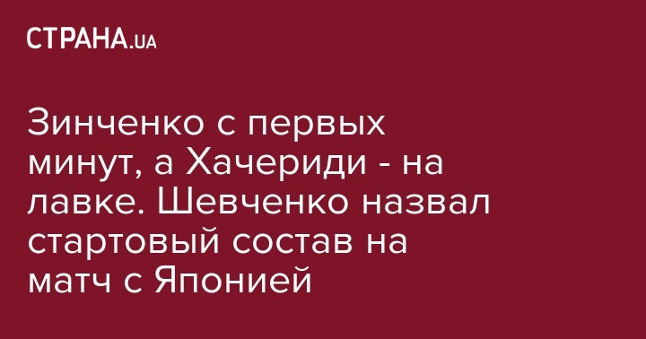 Зинченко с первых минут, а Хачериди - на лавке. Шевченко назвал стартовый состав на матч с Японией