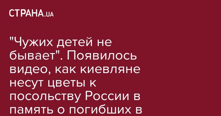 "Чужих детей не бывает". Появилось видео, как киевляне несут цветы к посольству России в память о погибших в Кемерово