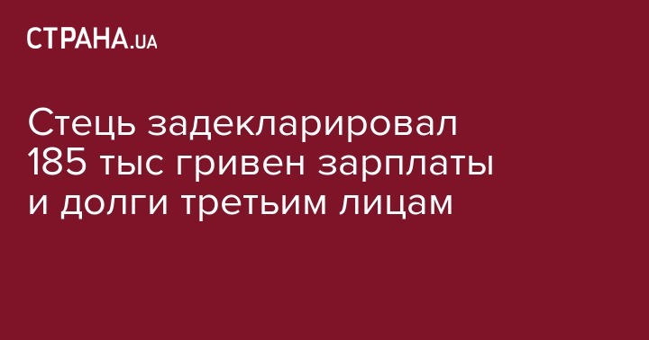 Стець задекларировал одолженные третьим лицам в 2015 году 40 тыс. евро и $50 тыс., а его жена - 30 тыс. евро и $50 тыс.