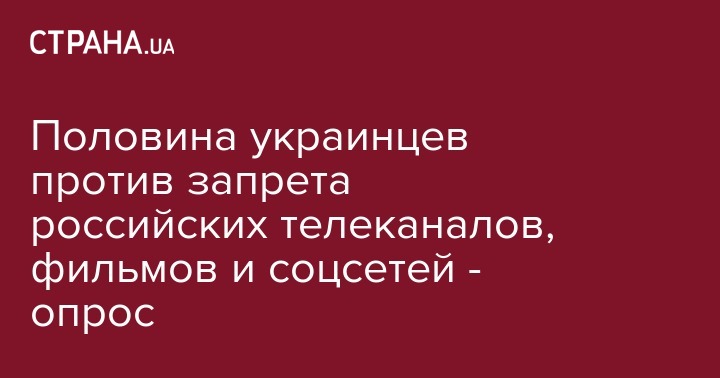 Против запрета транслировать в Украине российские телеканалы, фильмы, а также ограничивать работу соцсетей высказалась почти половина украинцев.