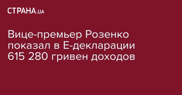 Вице-премьер Розенко показал в Е-декларации 615 280 гривен доходов