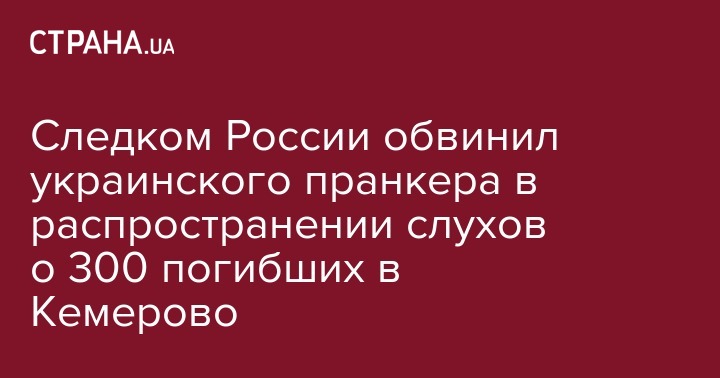 Следком России обвинил украинского пранкера в распространении слухов о 300 погибших в Кемерово