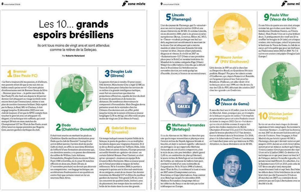 Полный список самых талантливых бразильцев по версии France Football выглядит так: