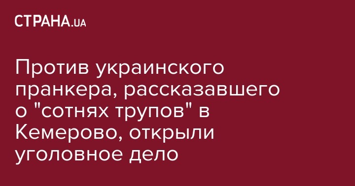 Против украинского пранкера, который распространял ложную информацию о числе жертв пожара в кемеровском ТЦ "Зимняя вишня" российские правоохранители возбудили уголовное дело. Об этом сообщается на сайте Следственного комитета России.