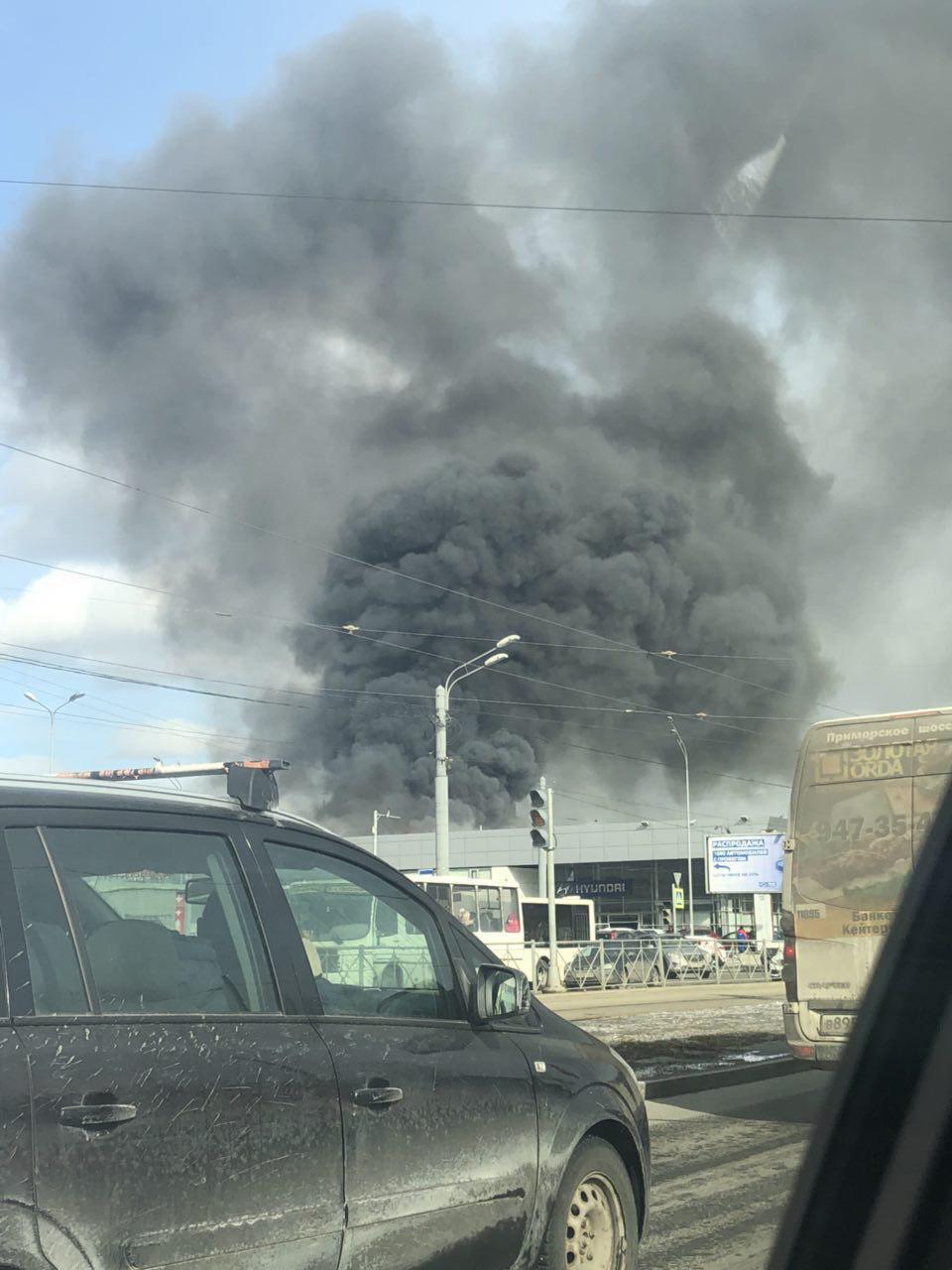 В Санкт-Петербурге полыхает автосалон. Над городом столб черного дыма
